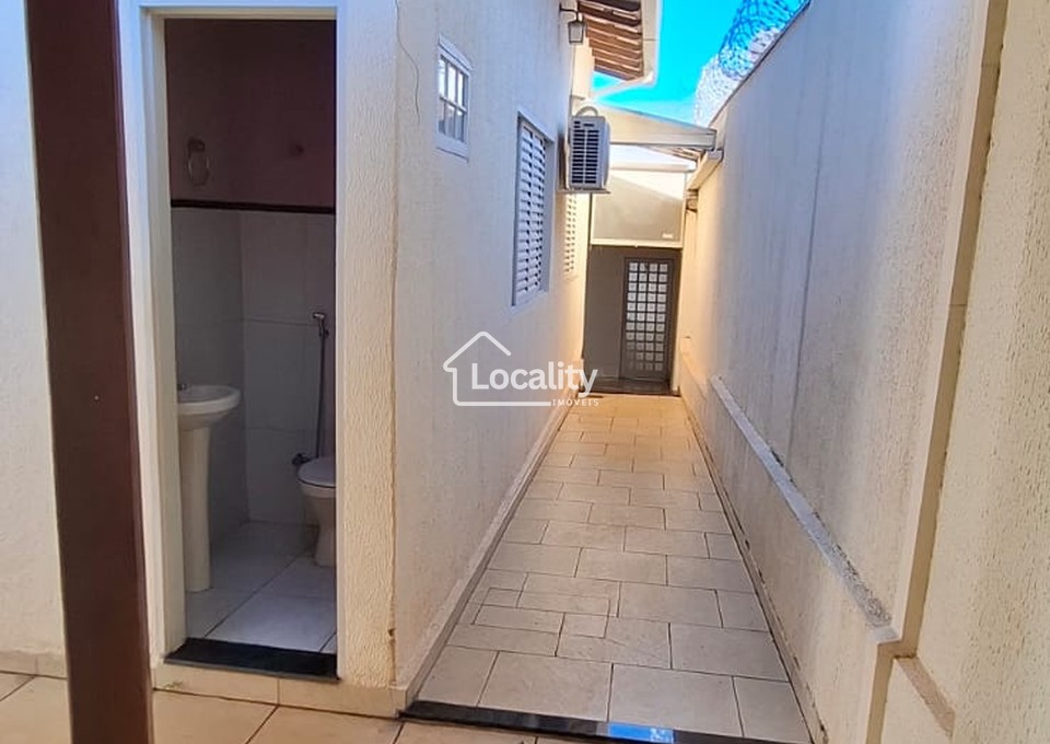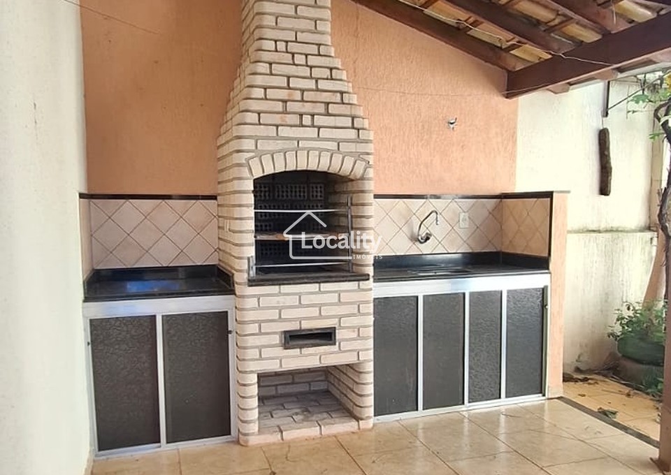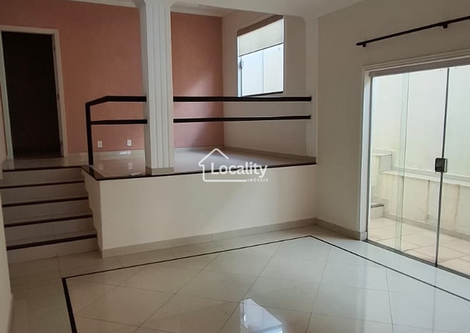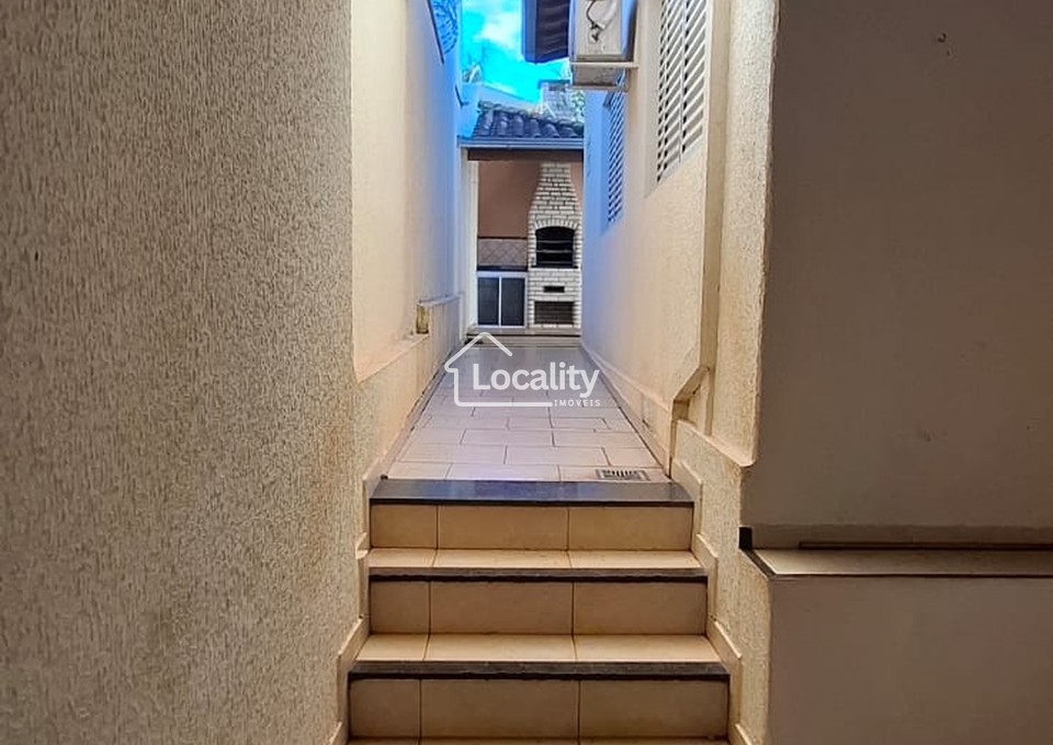 Oferece uma ampla sala para 3 ambientes (sala, copa, mezanino), com claraboia e lavabo, hall íntimo com acesso para 3 quartos, sendo duas suítes, um escritório, banheiro social, cozinha planejada, área de serviço coberta, quiosque com churrasqueira, edícula e garagem coberta para 2 veículos.