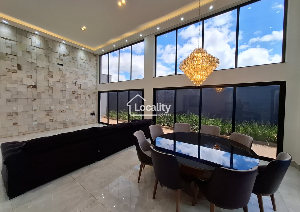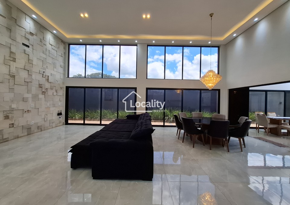 Apresentamos esta residência de alto padrão no Condomínio Lago do Jockey, projetada para quem valoriza arquitetura imponente, ambientes amplos e acabamento refinado.